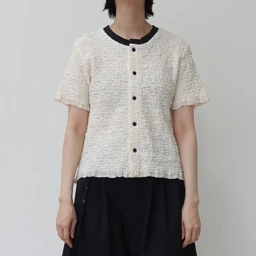 A round neck shirt from stretchy textured cotton mix fabric, designed with contrast neck rib & buttons.The crinkle texture makes the fabric very stretchy, allowing it to comfortably adapt to your body shape. For a more fitted look, you may choose a size with a circumference smaller than your bust measurement so the fabric stretches and hugs the body.